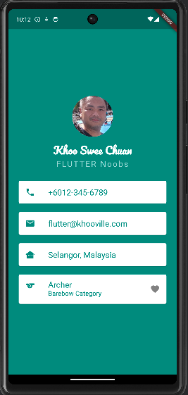 Now, the learning continue. Today, I am given the task to create a app that show the personal contact card of myself. The idea is to demonstrate the usage of Card widget and also using custom fonts that can download from Google website, free of charge and free from copyright. You can download the font… Continue reading Mobile App with Flutter : Create a personal name card (4/N)