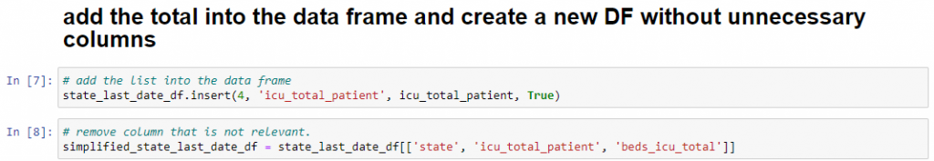 Now add the new data, the sum of ICU+PUI+NonCovic into a new column and also remove all unnecessary columns that are not required for the chart.