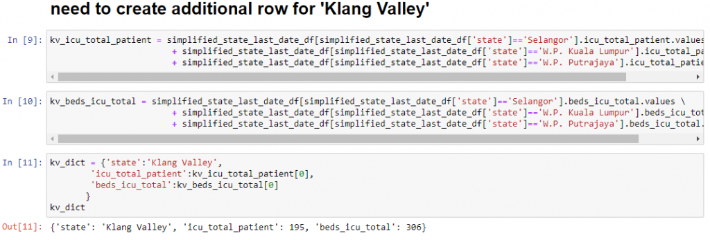 As usual, Covicnow adds another view of ‘Klang Valley’ into the chart. I have to calculate and include it in the data frame.
