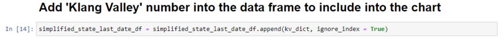 From the CovicNow chart above, you can see Malaysia’s number was included. We need to calculate it before we include the Klang Valley number into the data frame.