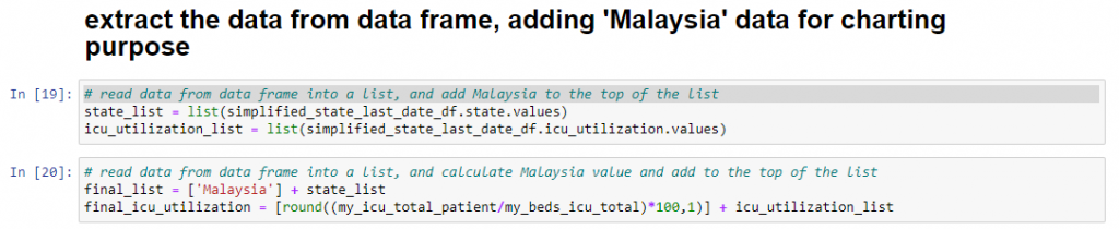 After sorting, we can now add Malaysia data to the top of the list for charting, since Covicnow chart shows Malaysia on the leftmost.