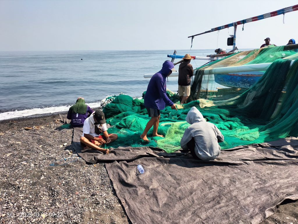 took a break after about 30 minutes and found this remote fisherman village, they are fixing the net after return from the sea.